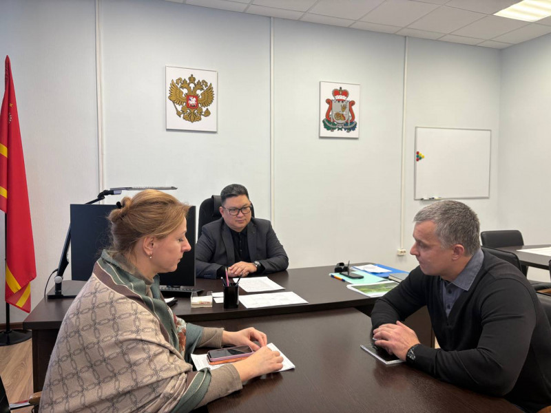 Владимир Фараонов в рамках стажировки встретился с министром природных ресурсов и экологии Смоленской области. Евгений Ким познакомил курсанта с основными функциями министерства.